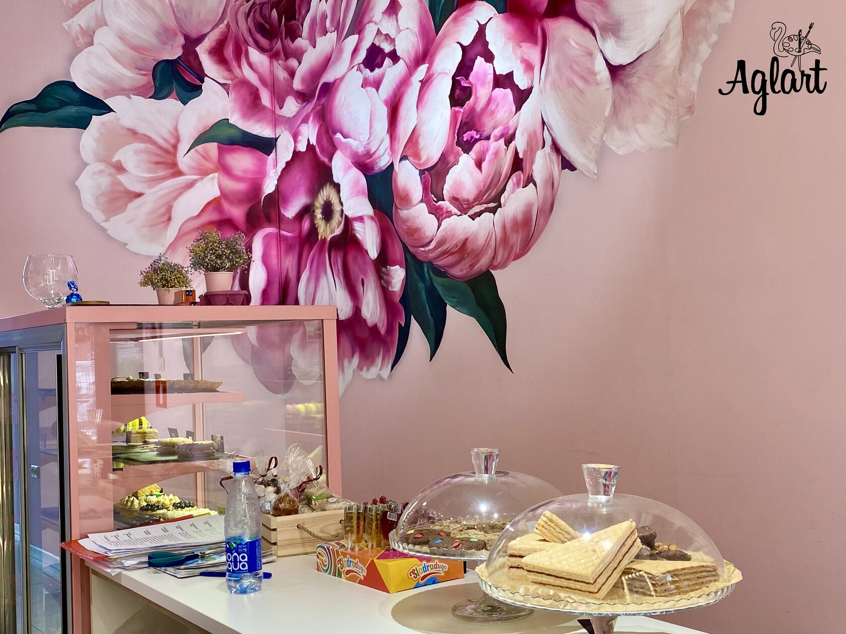 Роспись стены цветочной композицией в Кафе «Пион»