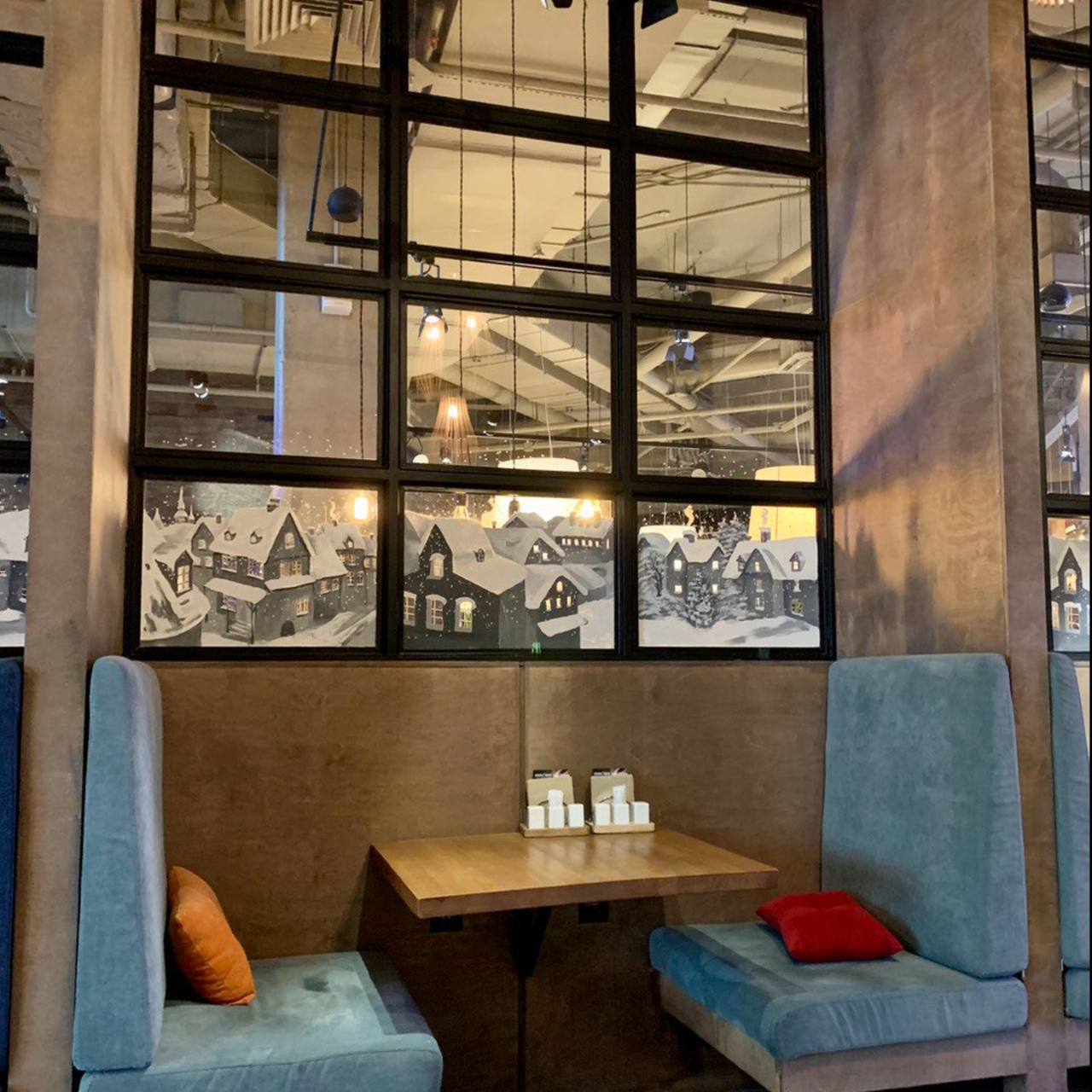 Новогодняя роспись окон ресторана «Итальянец»;