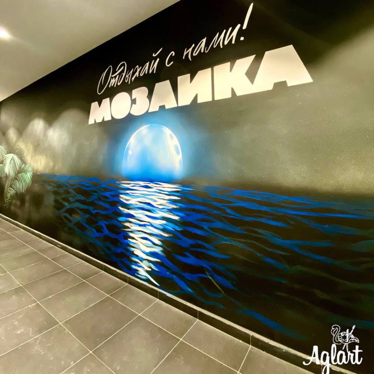 Роспись 8 стен на втором и третьем этажах в виде пальмовых листьев и пейзажа с луной;